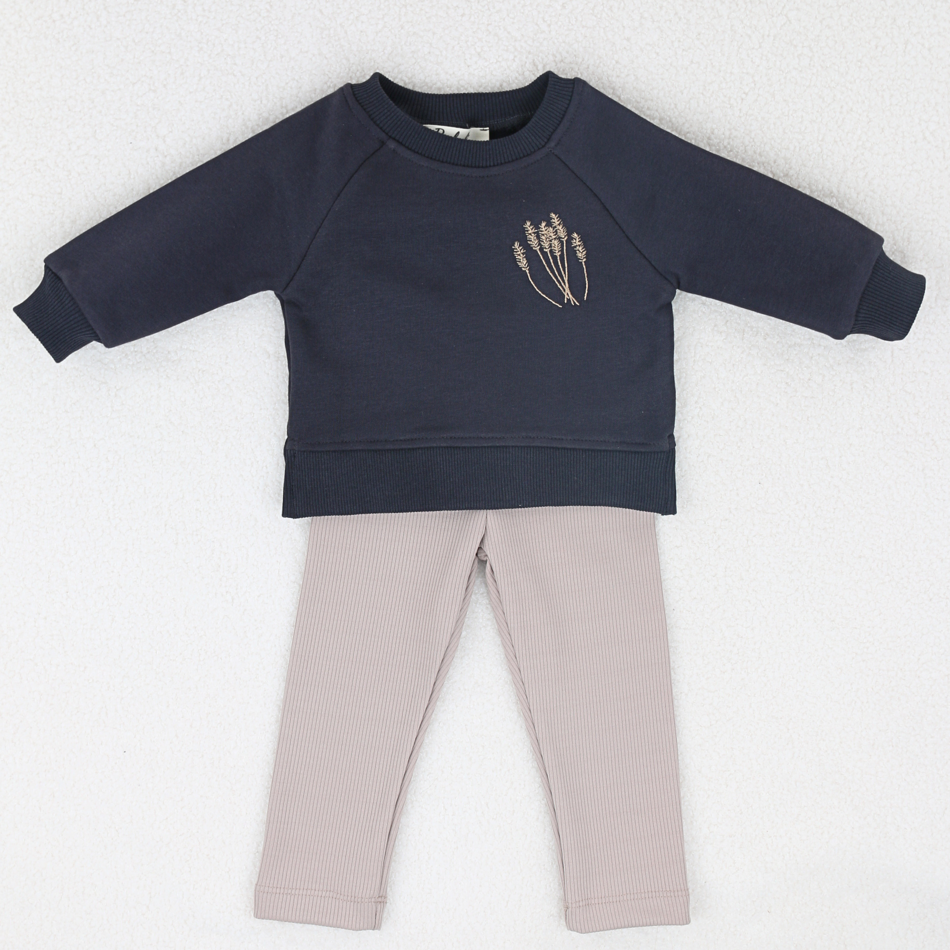 Navy Blue Wheat Cotton Sweatshirt & Fleece-Lined Leggings