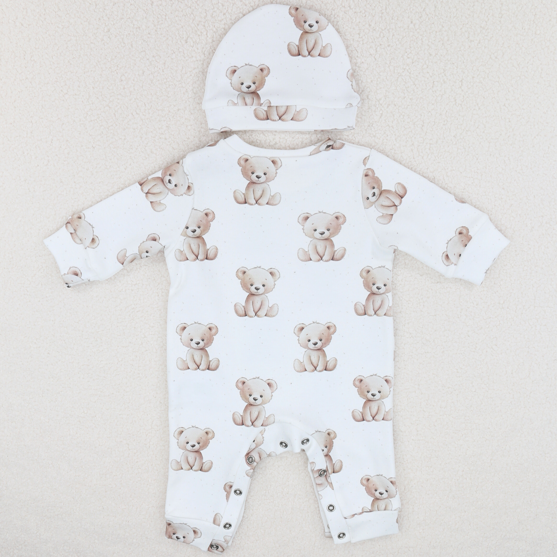 White Teddy Bear Cotton Romper & Hat