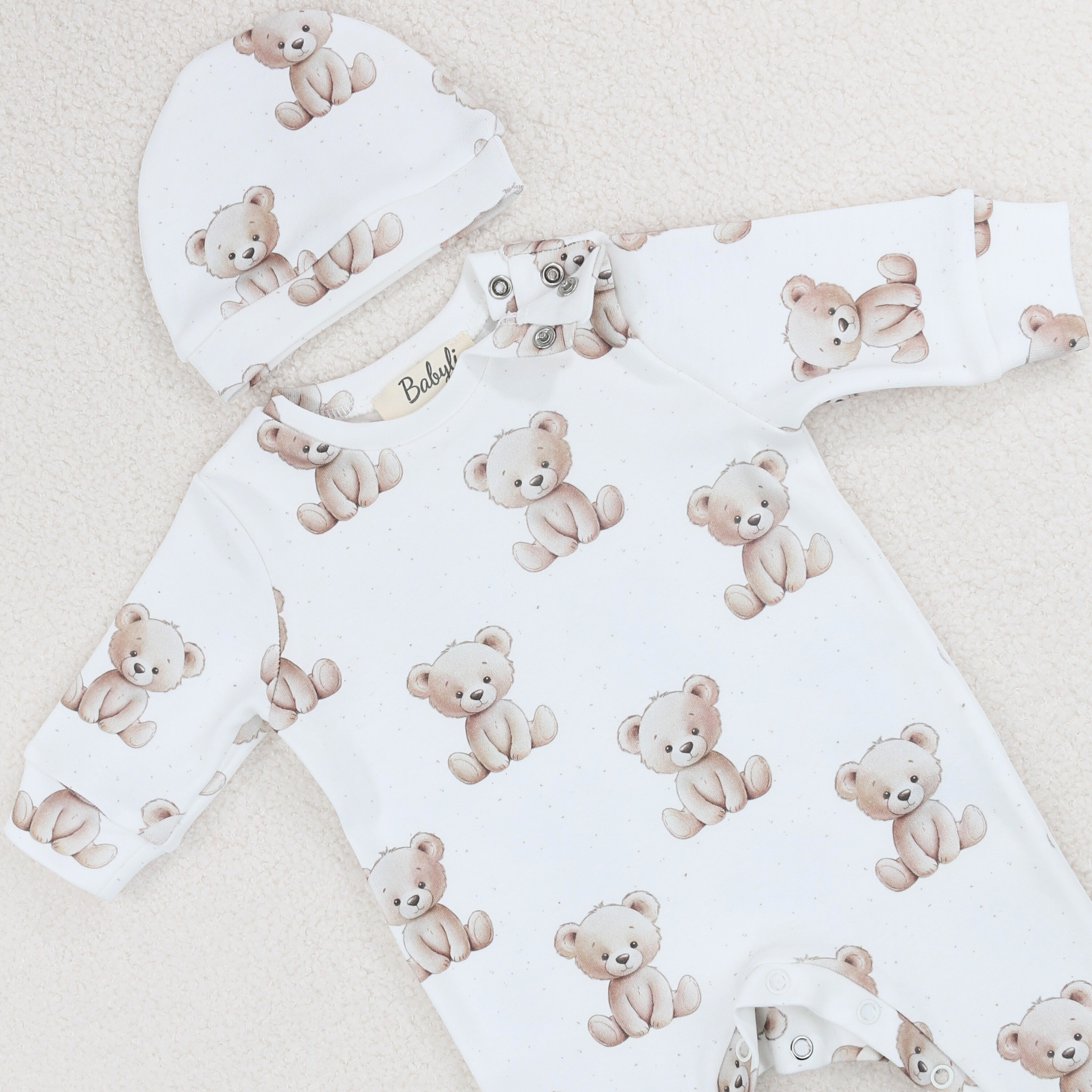 Wrap your baby in comfort and style with our White Teddy Bear Cotton Romper Set, complete with a matching hat for extra cosiness. Made from 100% soft, breathable cotton, it's perfect for everyday wear or gifting.